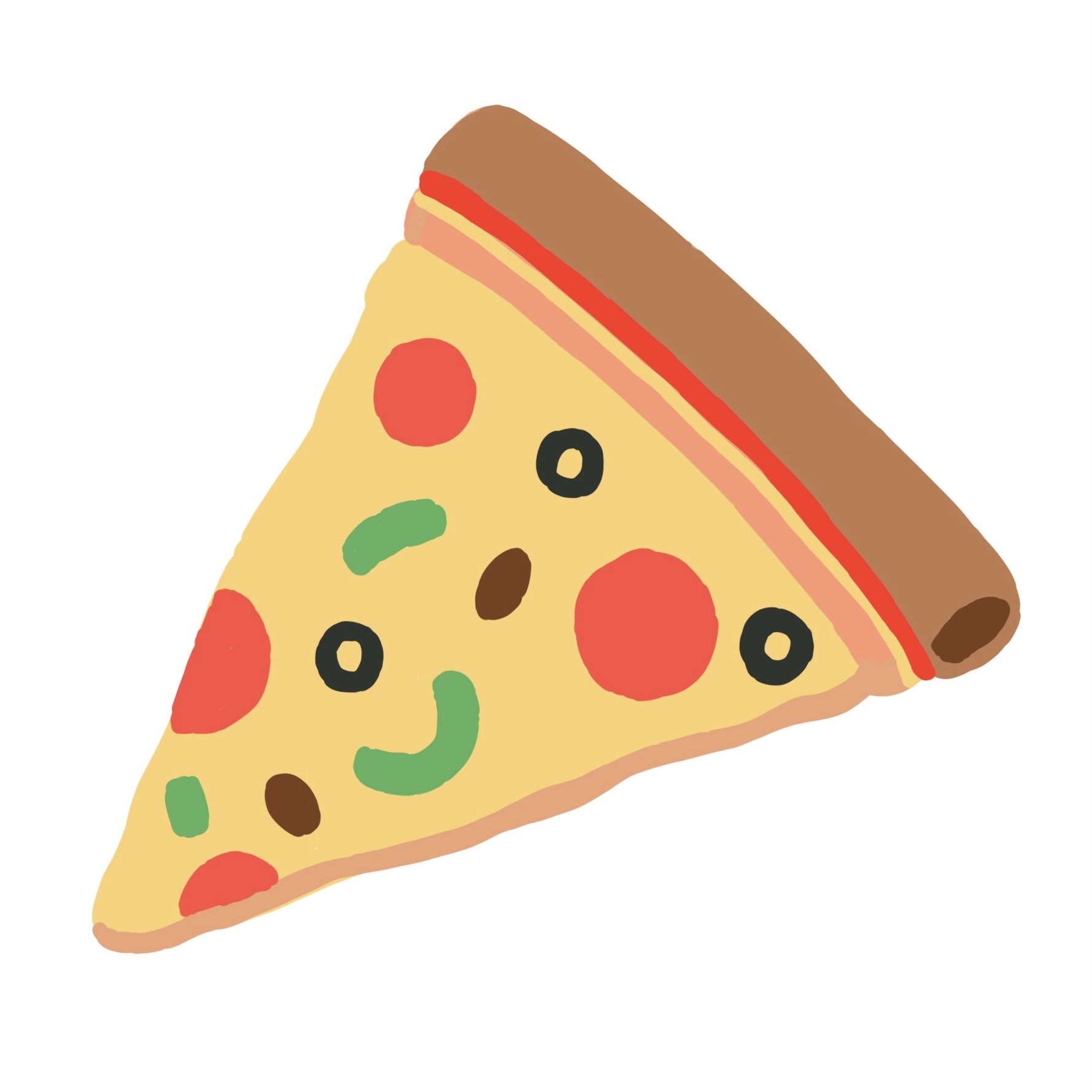 An illustration of two blue corncob holders, a blackened spoon, and a gray folded napkin on a black background.